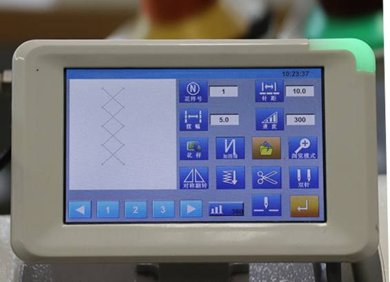 此壓線機采用志強公司自主研發(fā)操作軟件,通過針桿旋轉(zhuǎn)技術來實現(xiàn)不同花樣,包括T字型,X型,口字型等298種裝飾花樣。經(jīng)過家具制造商改良,在對沙發(fā)和汽車座套的轉(zhuǎn)角進行壓明線作業(yè)時也能確保縫紉速度和漂亮的線跡。本機采用杜克普(DURKOPPADLER)204款超大半回轉(zhuǎn)型擺梭,增加容線量,減少換線次數(shù),提高工作效率。能使用極粗線(1500dx3,V415,V462,T-500或1.4mm空心線,扁線或裝飾線),是沙發(fā)和汽車座套生產(chǎn)廠家不可或缺的花樣裝飾縫紉設備。超強的垂直機針穿透力、特殊改型壓腳及線跡調(diào)節(jié)裝置,確保在縫紉交叉接縫時保持統(tǒng)一性,避免拋線,浮線,縮針距,跳針和線疙瘩等瑕疵,使用極粗線對沙發(fā)套或汽車坐套進行壓明線作業(yè)時,其優(yōu)勢更加明顯。