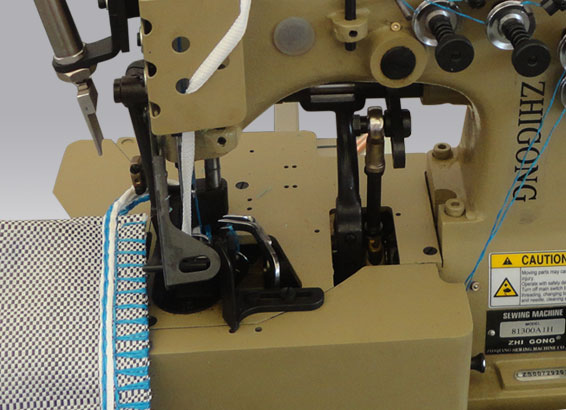 本機(jī)是志強(qiáng)公司專門為集裝袋生產(chǎn)設(shè)計(jì)的特厚料包邊鏈鎖縫紉機(jī),其采用上下送料方式,能輕易完成爬坡、轉(zhuǎn)角等部位的縫紉。結(jié)構(gòu)設(shè)計(jì)新穎,使包邊線跡、鏈鎖線跡同時(shí)完成。其穩(wěn)重的立柱式板架設(shè)計(jì),更加適用于在集裝袋上縫紉。入料口和卸料口可以同時(shí)縫紉上下防漏條。本機(jī)擁有電氣控制壓腳升降機(jī)構(gòu),使縫紉機(jī)操作更加靈活、方便,縫紉效果好。自主設(shè)計(jì)的電氣控制加熱剪線裝置,剪線長度完全符合集裝袋標(biāo)準(zhǔn)。